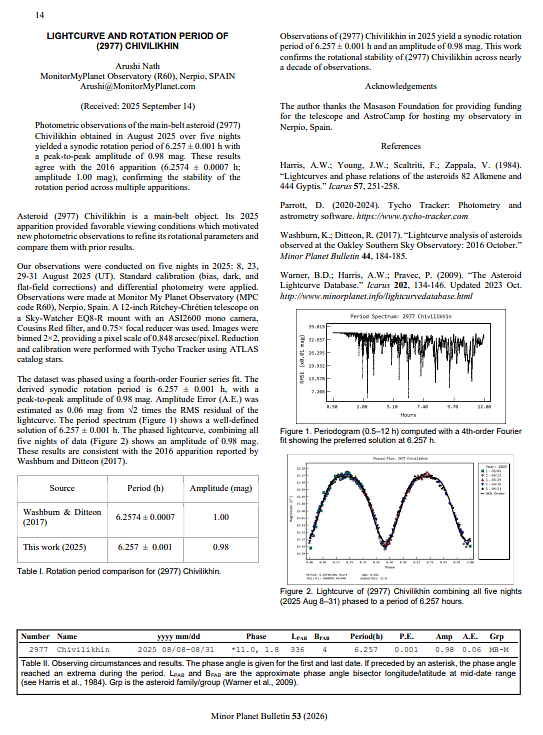 Minor Planet Bulletin, 53(1), 14. (2026)